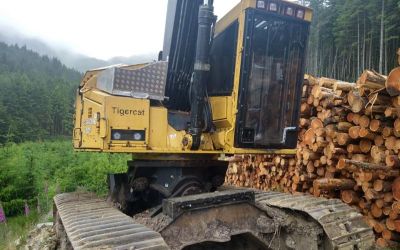 We now have T-Winch Traction Assist machinery to work extremely steep slopes in a safe working manner. Before hand Harvesters and Forwarders were at their limit due to no traction or the risk of sliding on slippery terrain. Now our machines can go further due to this smart technology. The T-Winch pairs itself to the forwarder so the drum speed of the winch does the exact same spreed as the machine. This eliminates any spinning or bouncing which keeps in brash mat in good condition for diffuse pollution.